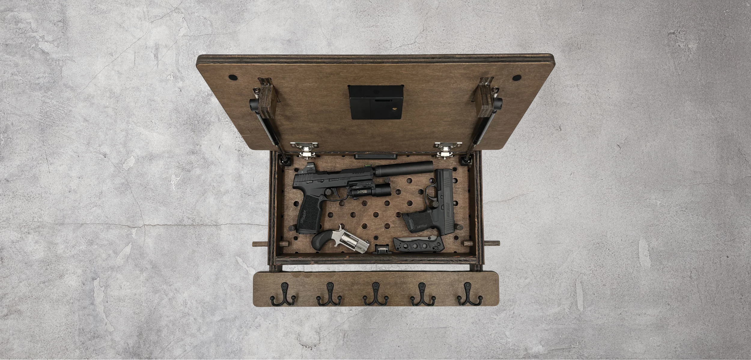 At Hidden Difense - PeGUNizer, we craft innovative products that blend seamlessly into everyday life while providing top-tier security. Our flagship product, the PeGUNizer, discreetly organizes your firearms within a common household item. With a focus on stealth and protection, we're dedicated to offering solutions that safeguard what matters most, all while keeping it out of sight. Our unique designs are in the patent process, bringing you unparalleled peace of mind.